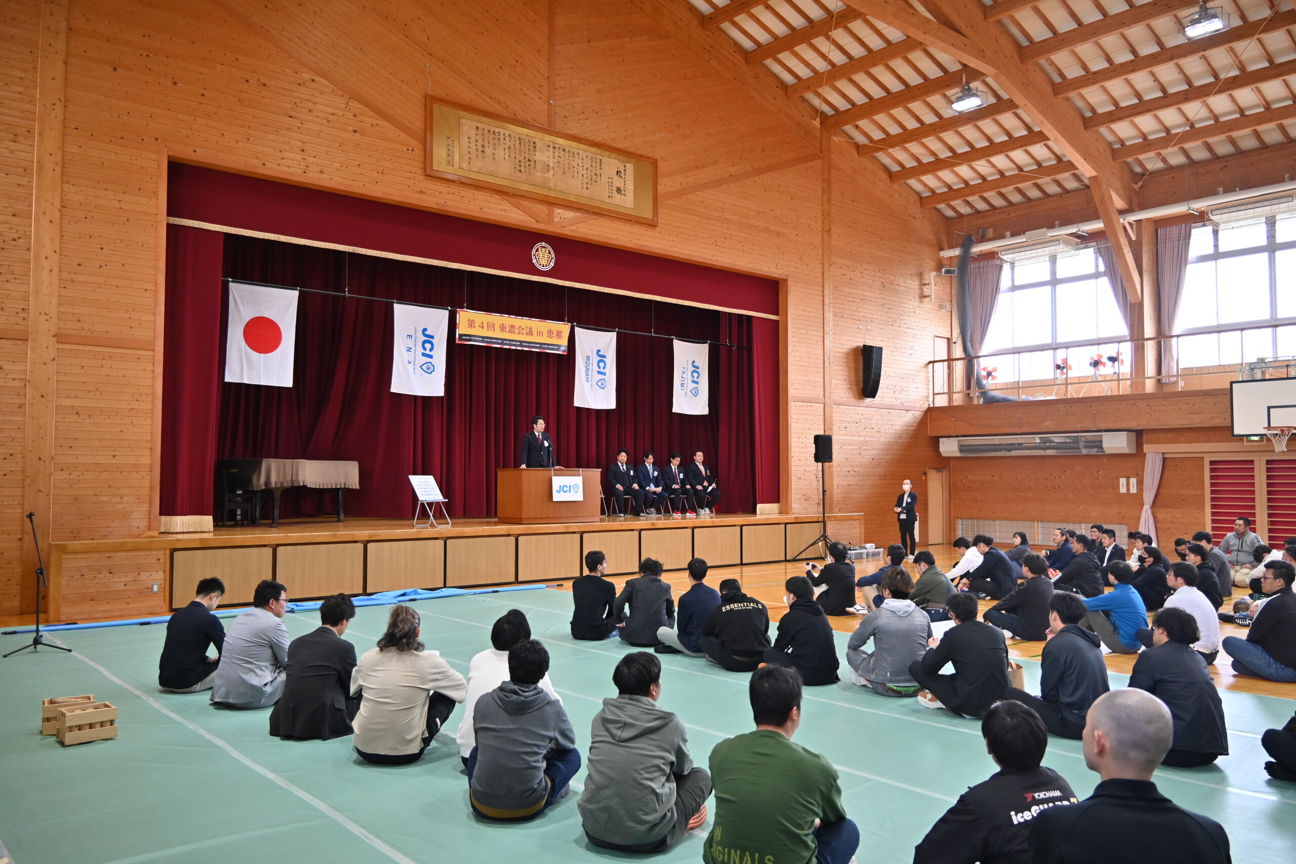 【活動報告】第4回東濃会議 in 恵那 2025年4月16日 最終更新日時 : 2025年4月16日 ena-jc 2025年3月29日、恵那市の市立大井小学校にて東濃会議を開催しました。東濃地域には5つの青年会議所があり、年に一度の会員同士の交流の機会として実施しています。今年は恵那青年会議所が主幹となり、東濃5市の特産品(西方いも、串原こんにゃく、瑞浪ボーノポーク、大竹醤油、三千盛)を使ったオリジナルの芋煮を作って皆で食したり、ボッチャやモルックなどのニュースポーツを通じた交流を図りました。この場で生まれたつながりが青年会議所活動はもちろん、日常生活でも役立つことを願い、今後も交流の機会を創っていきたいと思います。