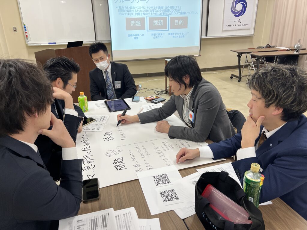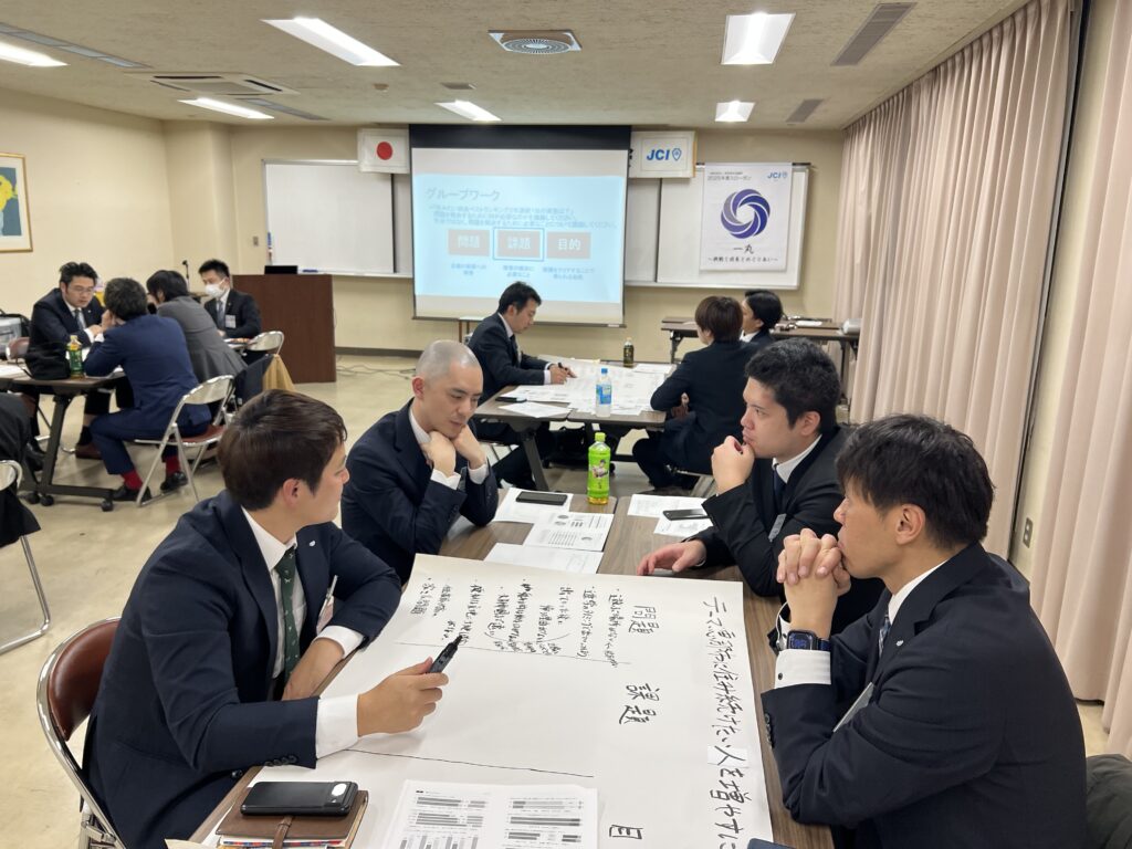 4 月度例会ではJAYCEEの理想について理解をしていただくために、明るい豊かな社会の実現に向けて、青年会議所がどの様な考え方で地域により良い効果を生み出そうとしているのかを体験していただきました。グループワークでは恵那市に住み続けたい人を増やすことをテーマに、「問題」「課題」「目的」について話し合っていただきました。今回体験していただいた考え方は、事業や例会の構築時に必要な考え方となります。青年会議所が考え方の違う個が集まった集団として、街のことを良くしようとするうえで重要となります。そして、自分たちの地域がより良くなるためにはどうするべきかを真剣に考え、行動に移すことで、地域の課題を解決し、明るい豊かな社会へとつながっていきます。今回、各グループが在籍年数や役職に関係なく街のことを真剣に考え、問題が何なのか、課題が何なのかを真剣に話し合っている姿を見て、改めてJCって良い組織だなと再認識しました。今後も在籍年数に関係なく意見を出し合いながら、より良い活動を展開してまいります。